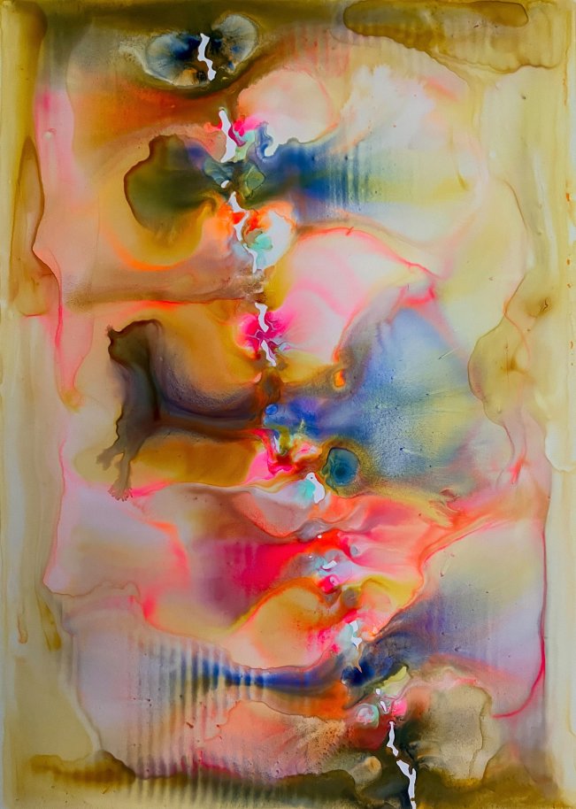 Milena Makani - (un)zip yourself, 2025. Acrylic, watercolour and ink on mineral stone sheet — 59 x 42 cm 23.5 x 16.6 in