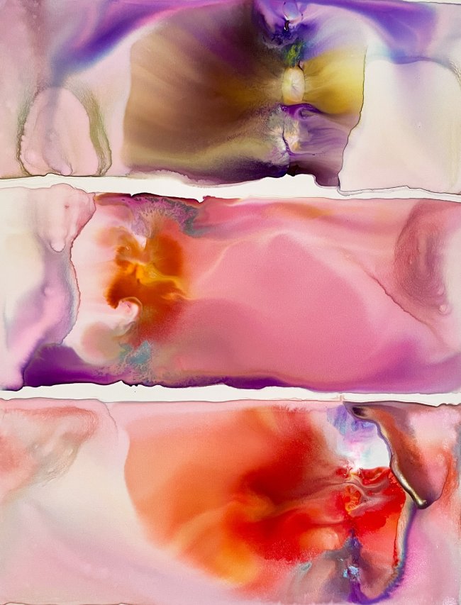Milena Makani - Heat, 2025. Acrylic, watercolour and ink on mineral stone sheet — Image 25cm 9.8in, Sheet 35 x 28 cm 14 x 11 in