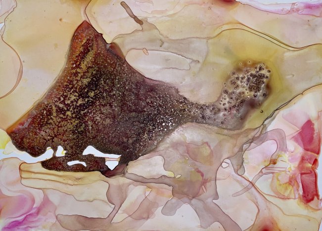 Milena Makani - Crackle, 2024. Acrylic, watercolour and ink on mineral stone sheet — 35 x 28 cm 14 x 11 in