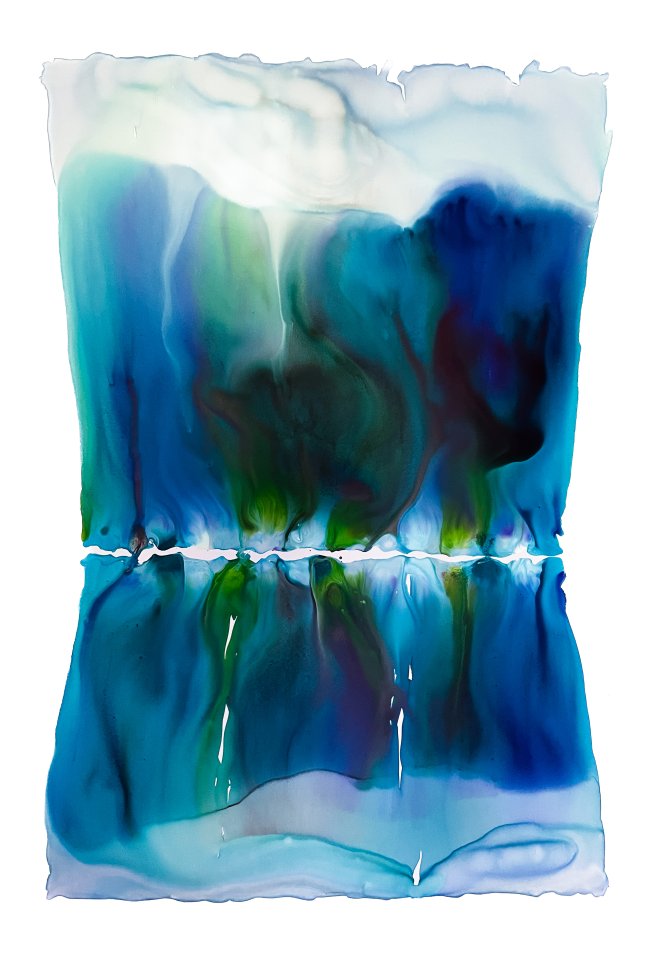 Milena Makani - Flyer, 2024. Acrylic, watercolour, ink and salt on mineral stone sheet — 32 x 22 cm 13 x 9 in