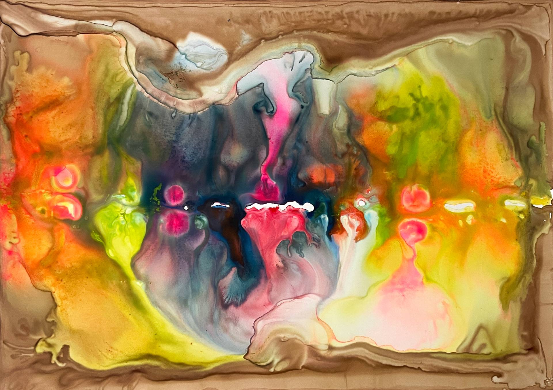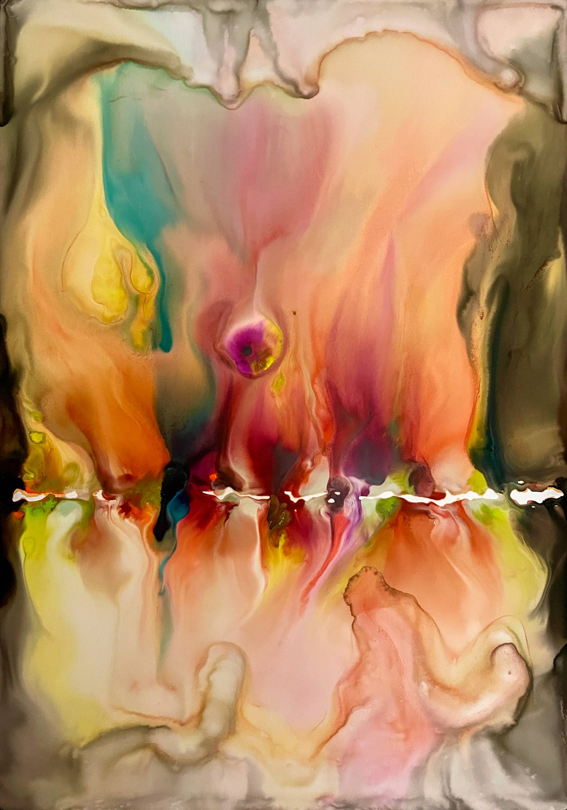 Milena Makani - (un)zip yourself, 2025. Acrylic, watercolour and ink on mineral stone sheet — 59 x 42 cm 23.5 x 16.6 in