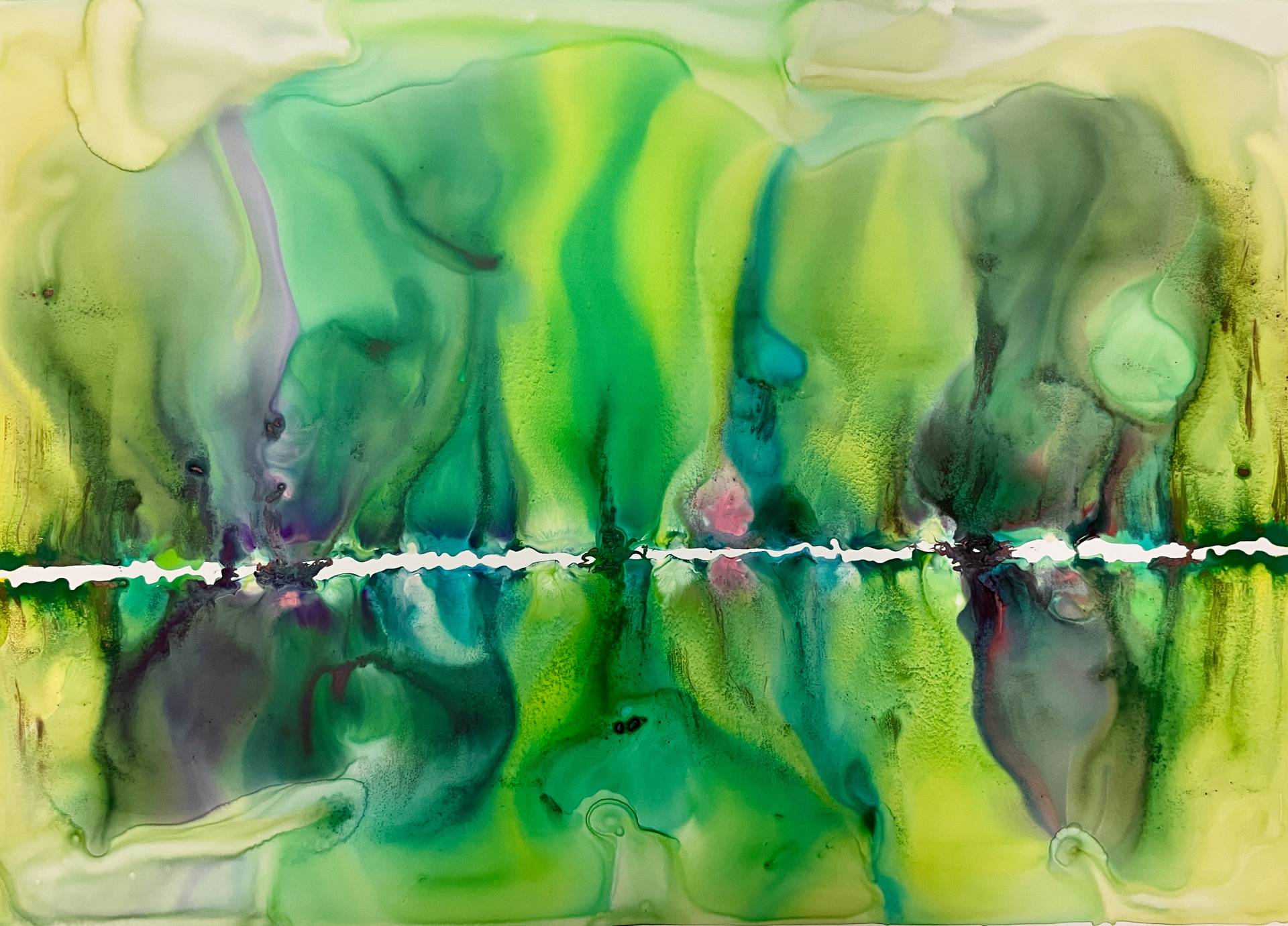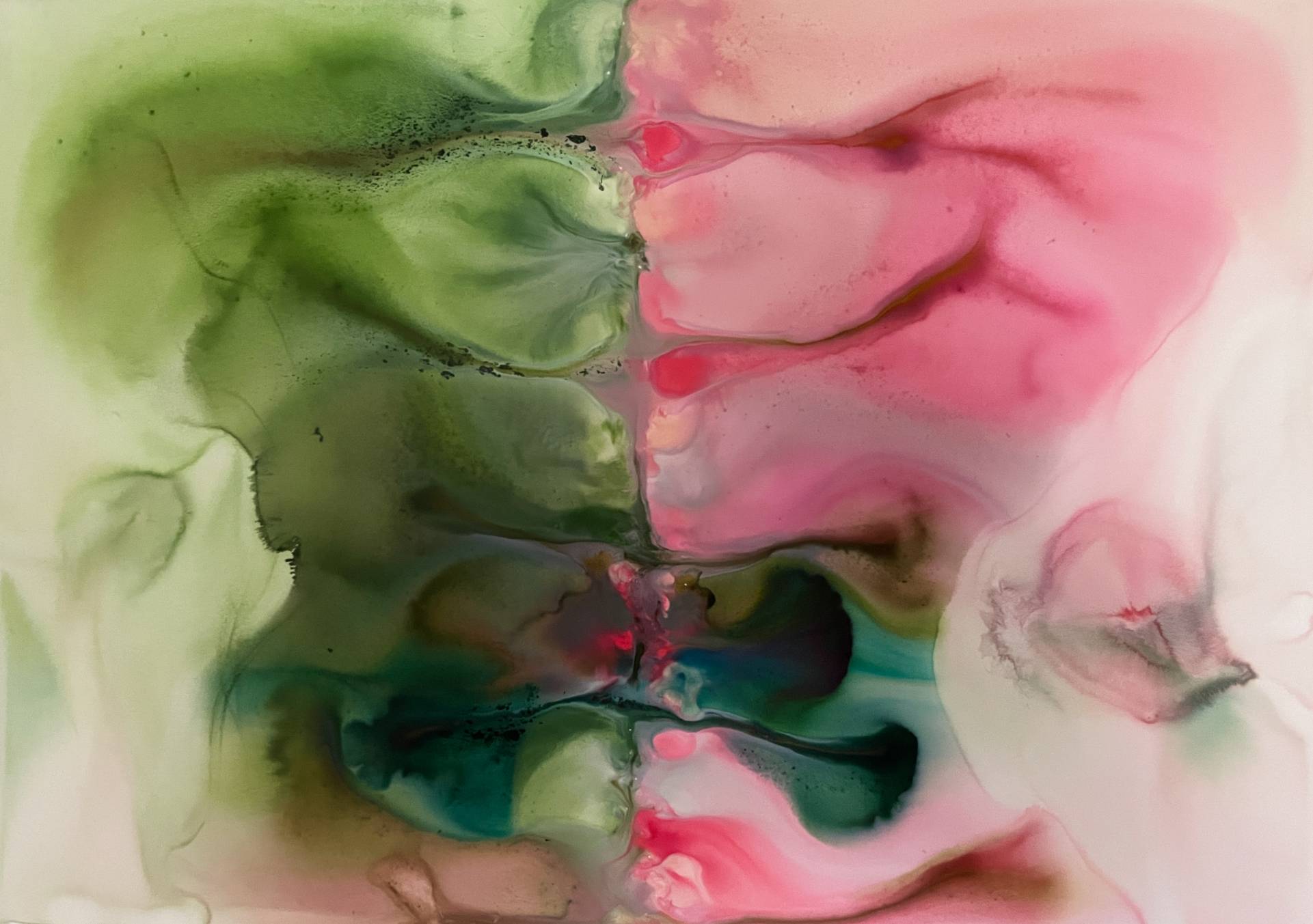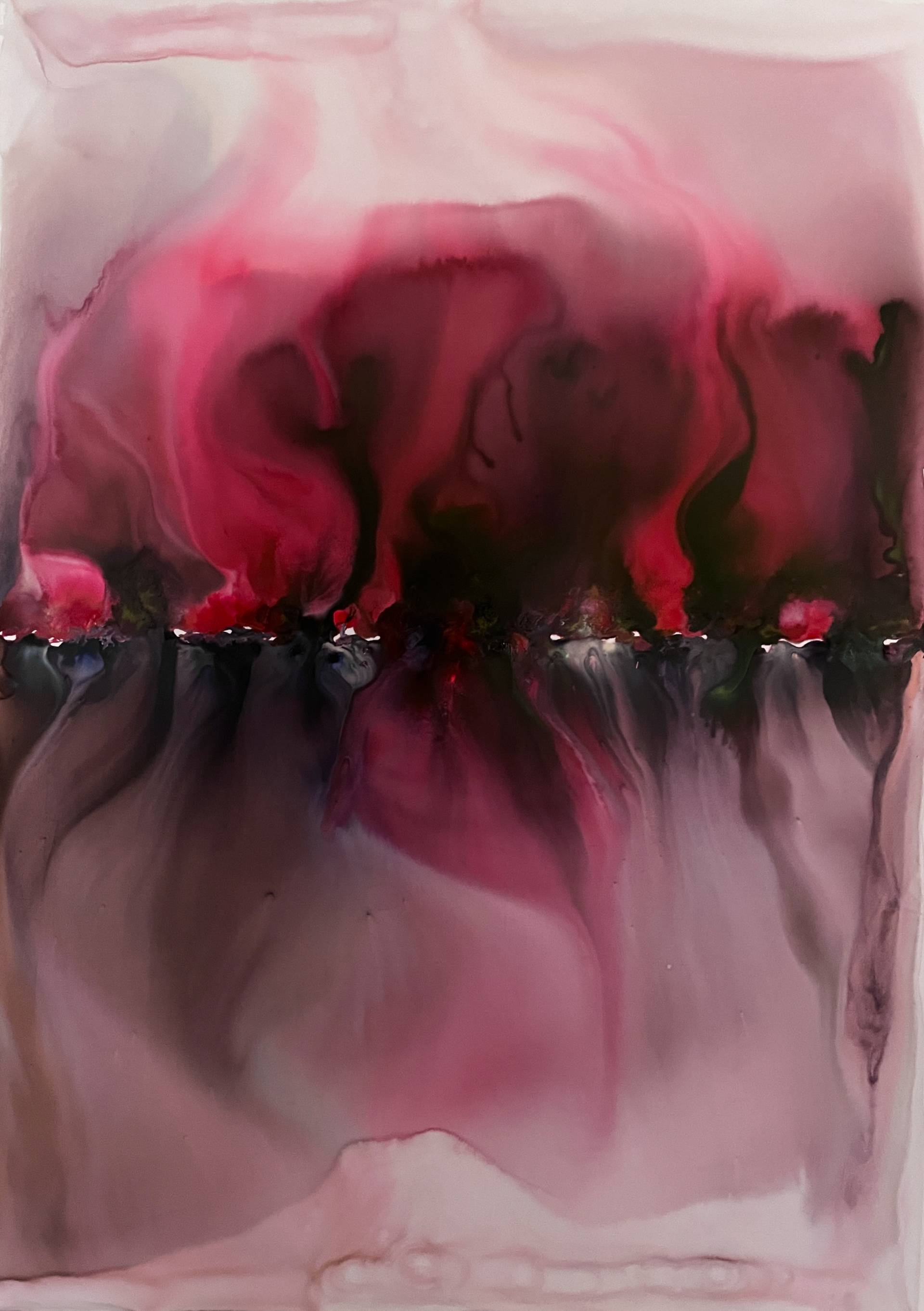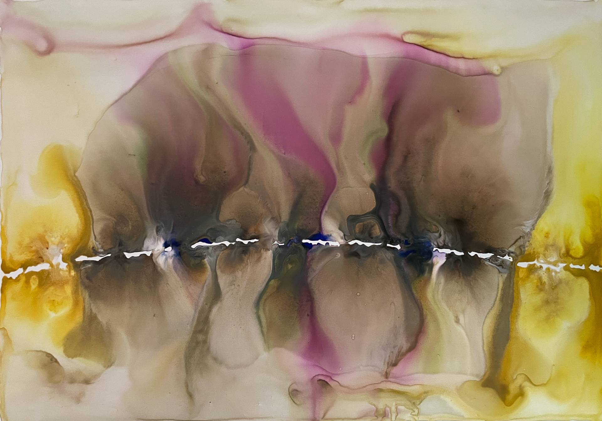 Milena Makani - Stenosis, 2025. Acrylic, watercolour and ink on mineral stone sheet — 59 x 42 cm 23.5 x 16.6 in.
