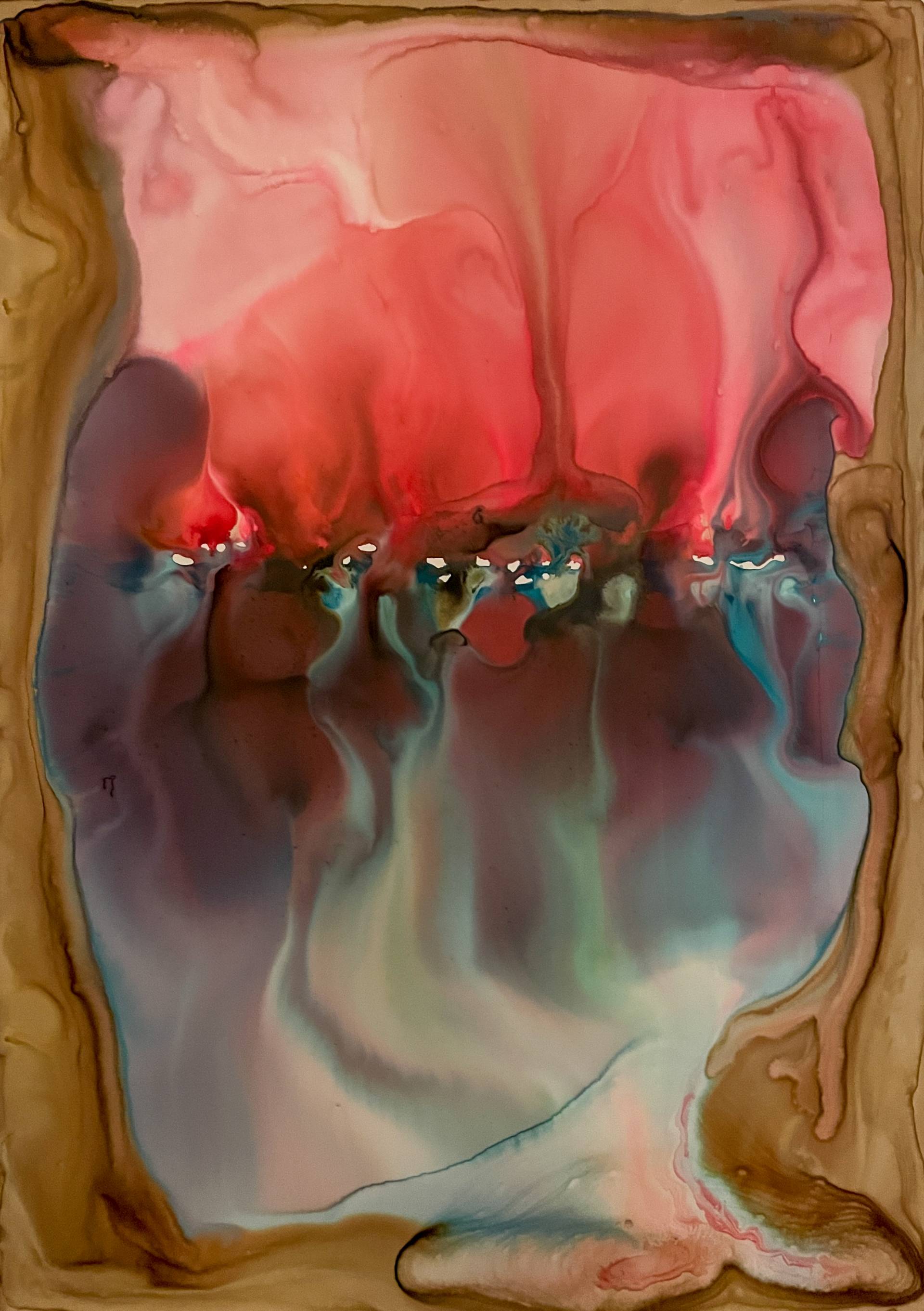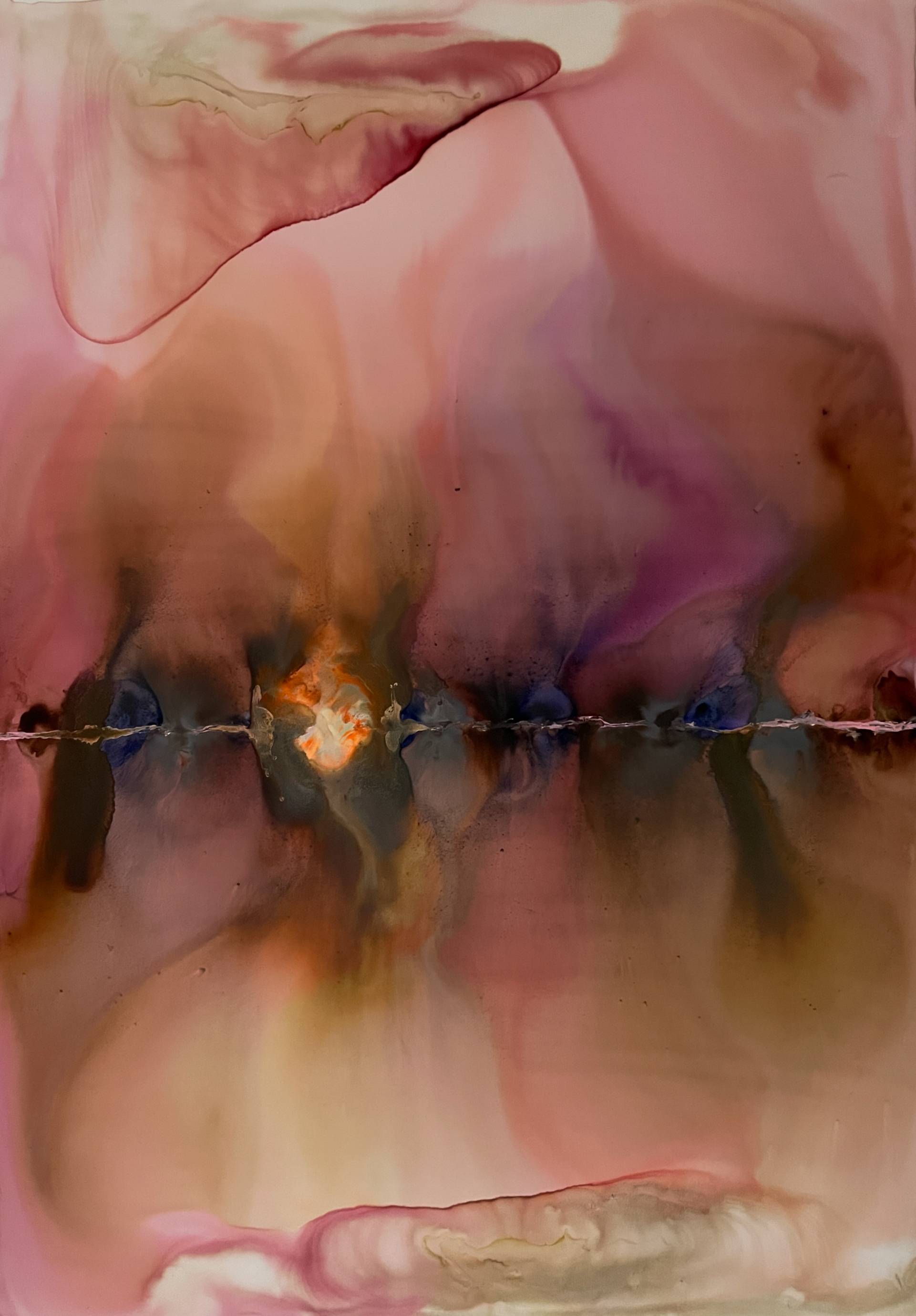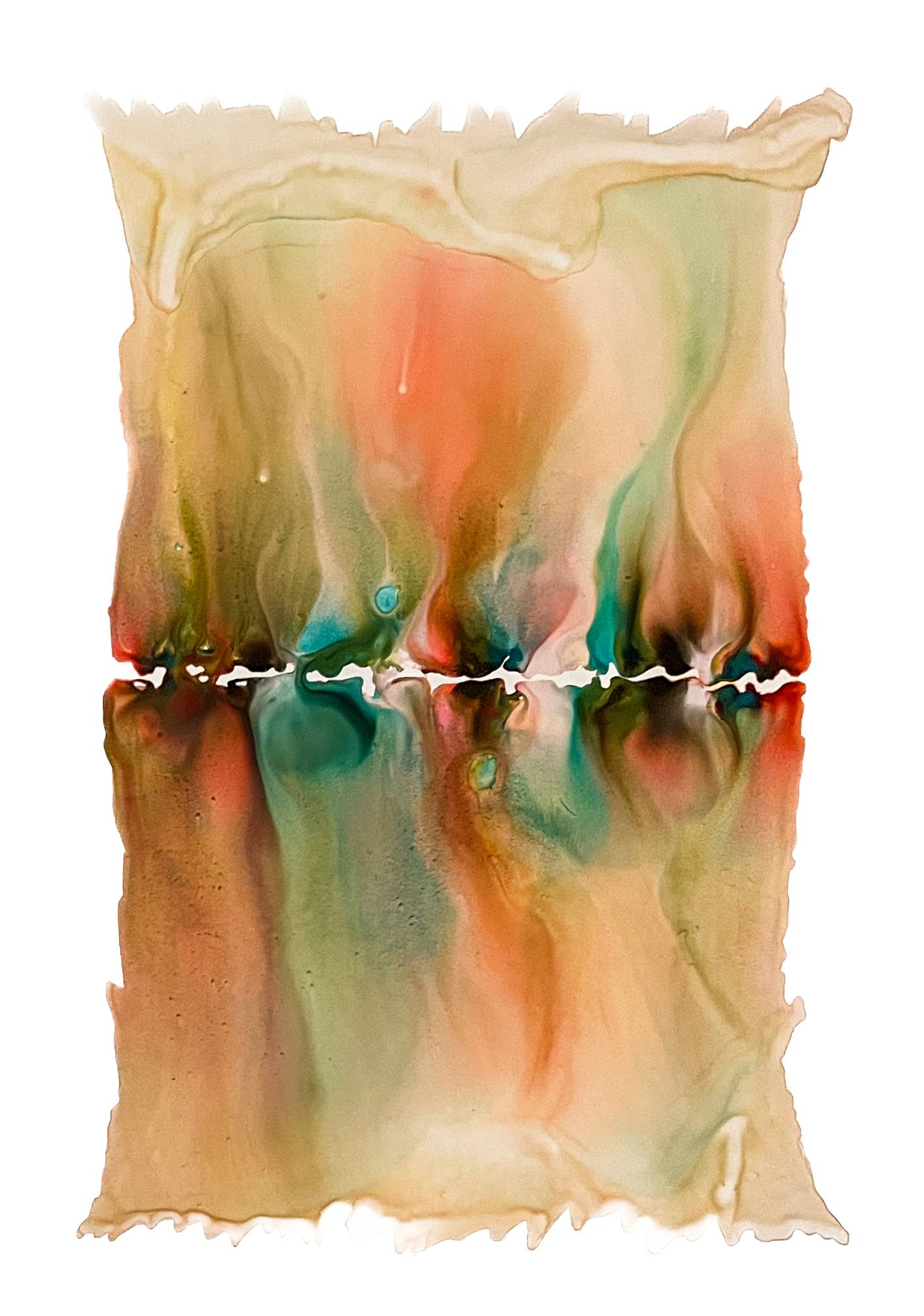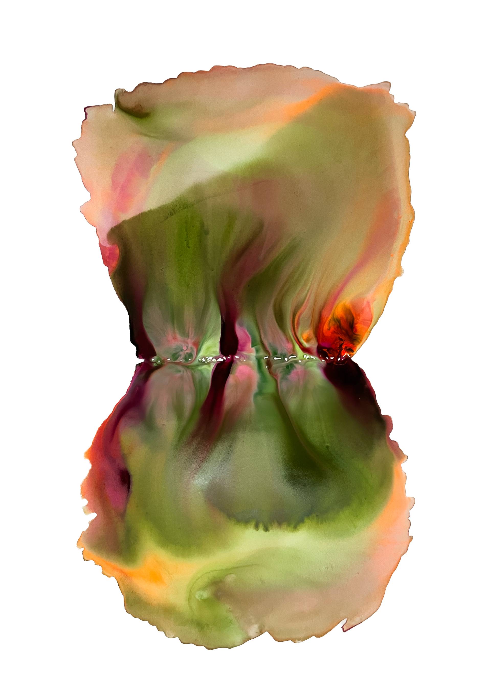 Milena Makani - Heat, 2025. Acrylic, watercolour and ink on mineral stone sheet — Image 25cm 9.8in, Sheet 35 x 28 cm 14 x 11 in