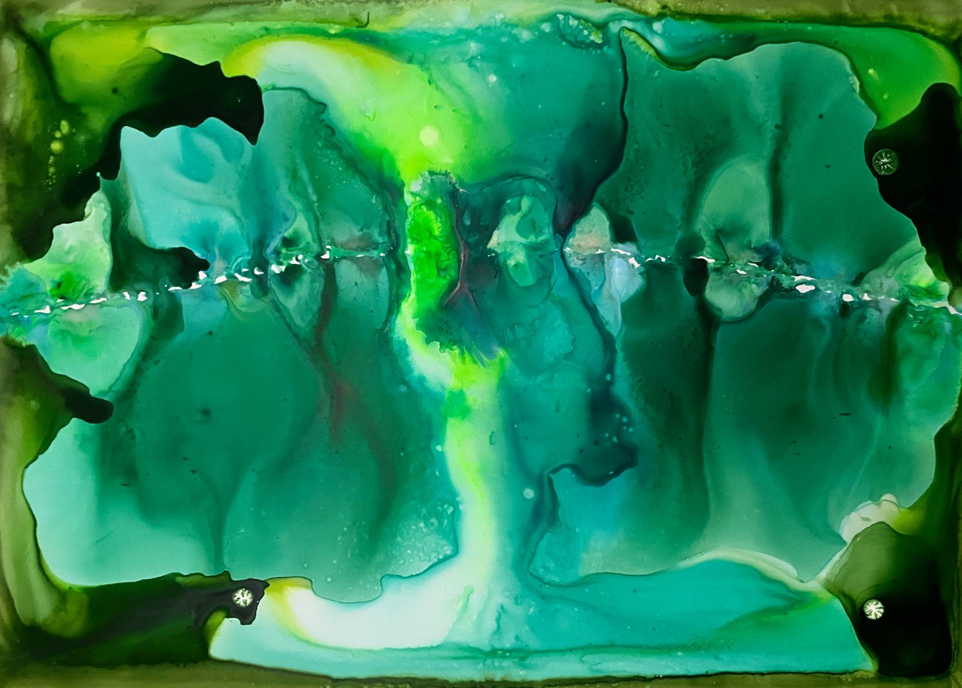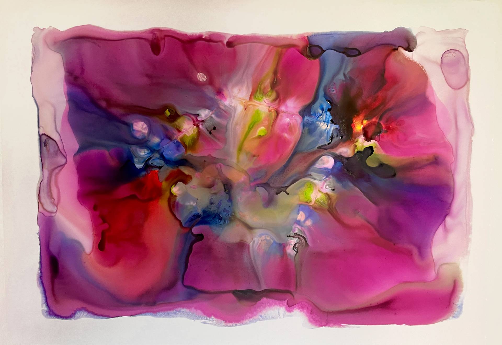 Milena Makani - Chemistry, 2025. Acrylic, watercolour and ink on mineral stone sheet — 42 x 30 cm 16 x 12 in