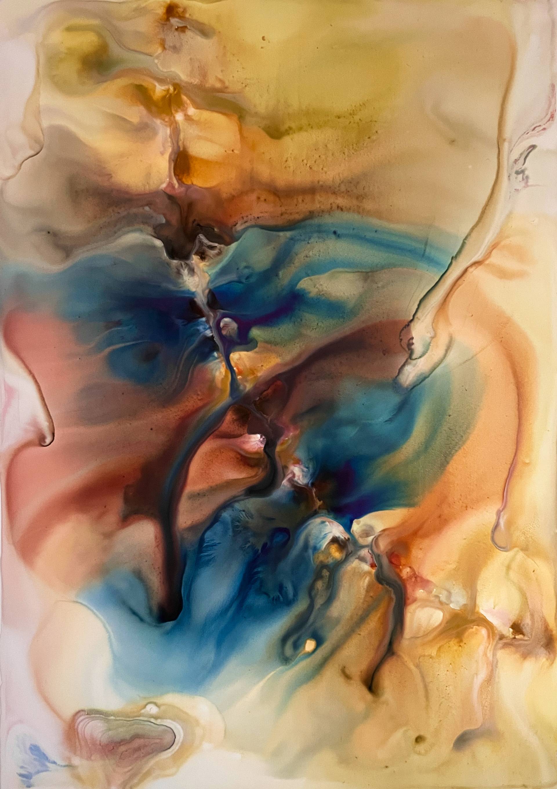 Milena Makani - Sahara Winds At Sea, 2025. Acrylic, watercolour and ink on mineral stone sheet — 59 x 42 cm 23.5 x 16.6 in
