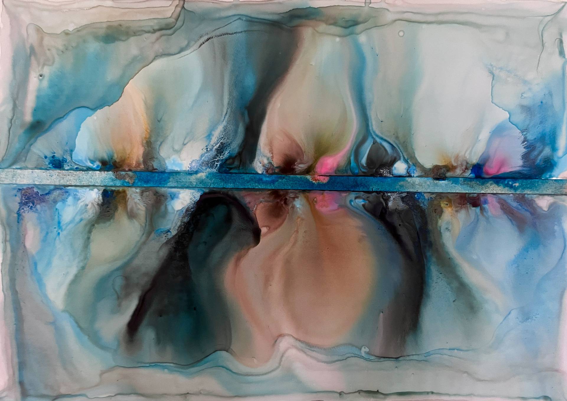 Milena Makani - Ondelis, 2025. Acrylic, watercolour and ink on mineral stone sheet — Image 25cm 9.8in, Sheet 35 x 28 cm 14 x 11 in