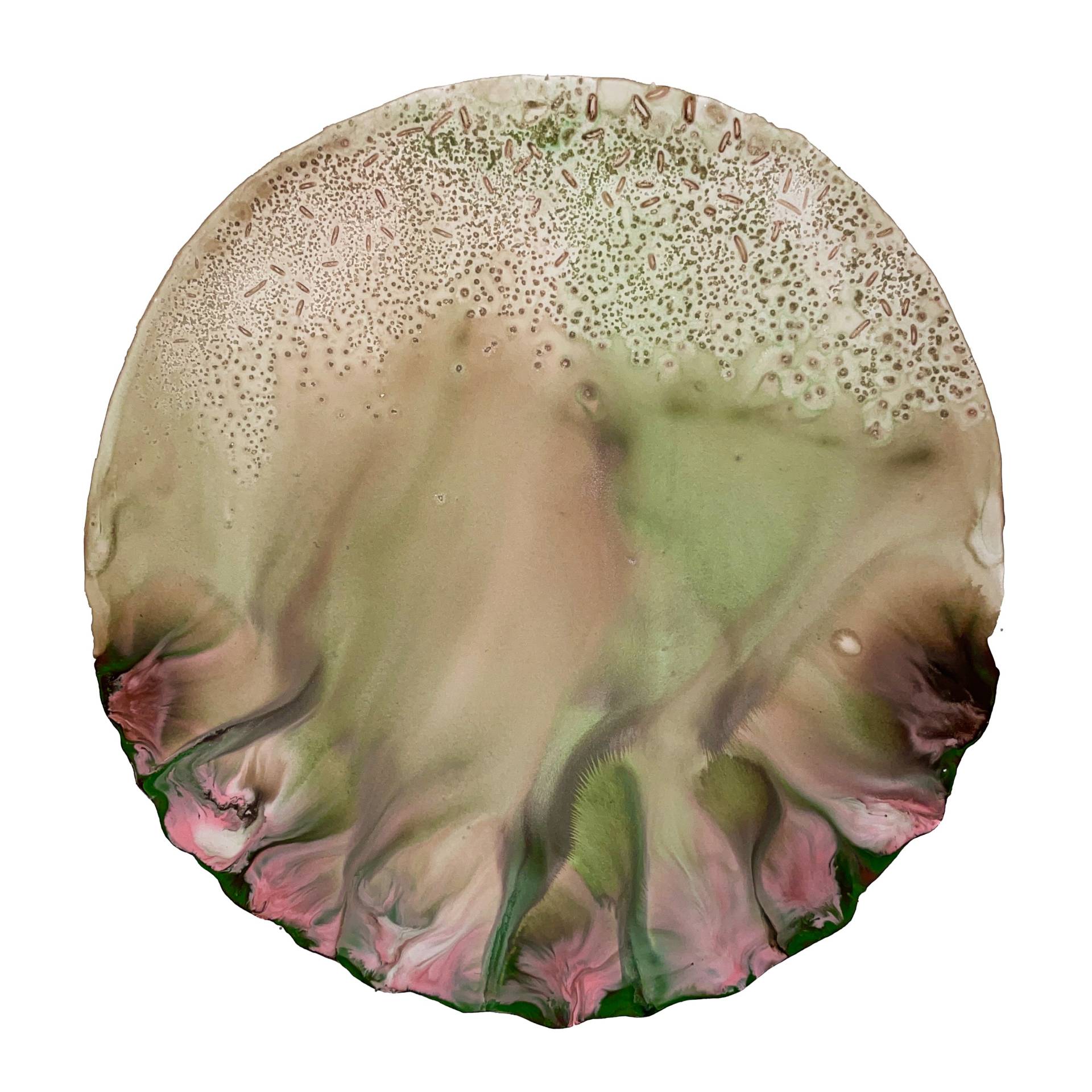 Milena Makani - Sediment, 2024. Acrylic, watercolour, ink, salt and rice on mineral stone sheet — Image 25cm 9.8in, Sheet 35 x 28 cm 14 x 11 in