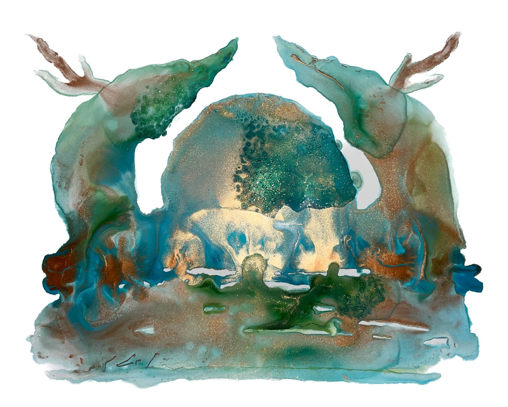 Milena Makani - Lyrel, 2025. Acrylic, watercolour and ink on mineral stone sheet — Image 25cm 9.8in, Sheet 35 x 28 cm 14 x 11 in