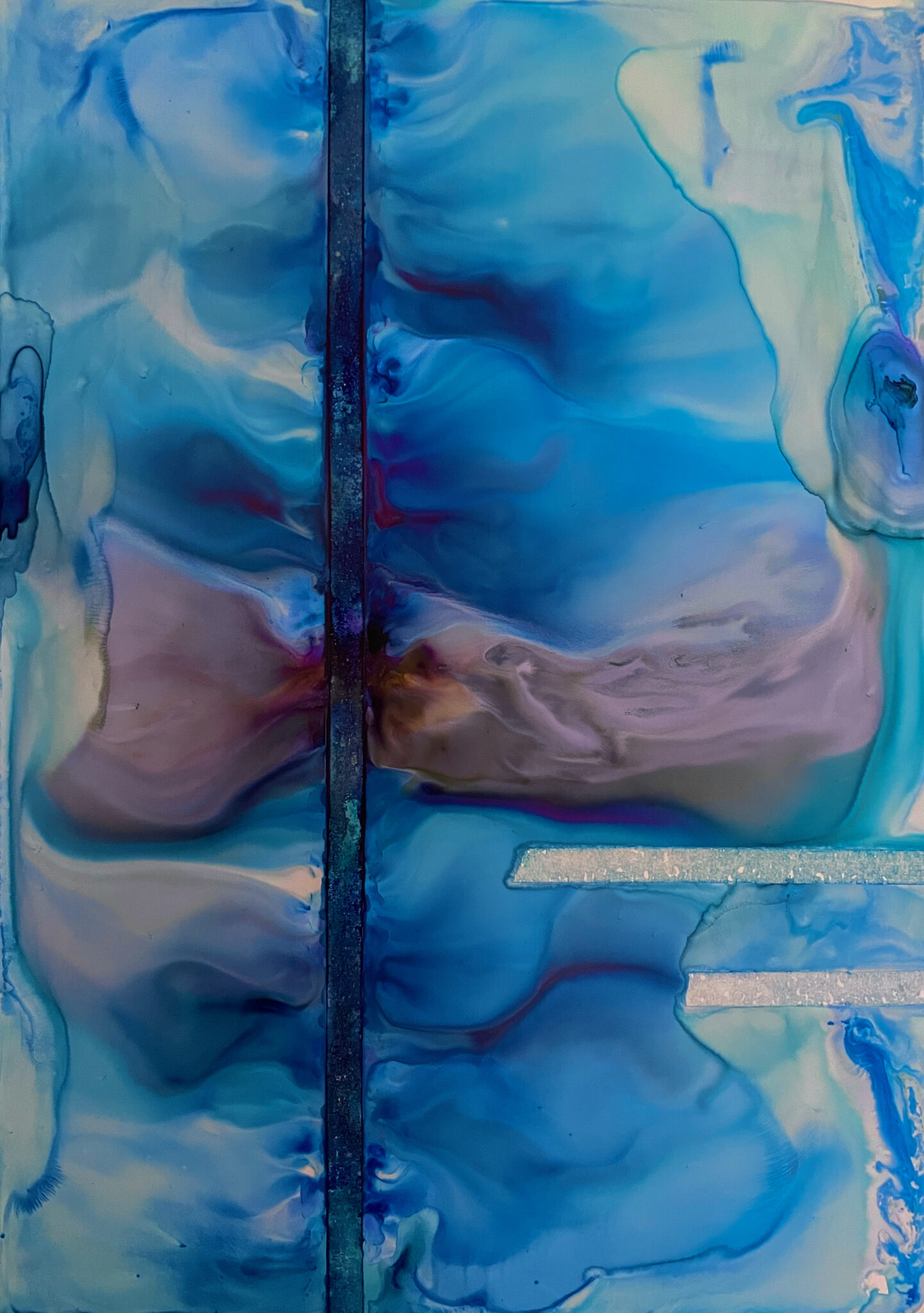 Acrylic, watercolour and ink on mineral stone sheet