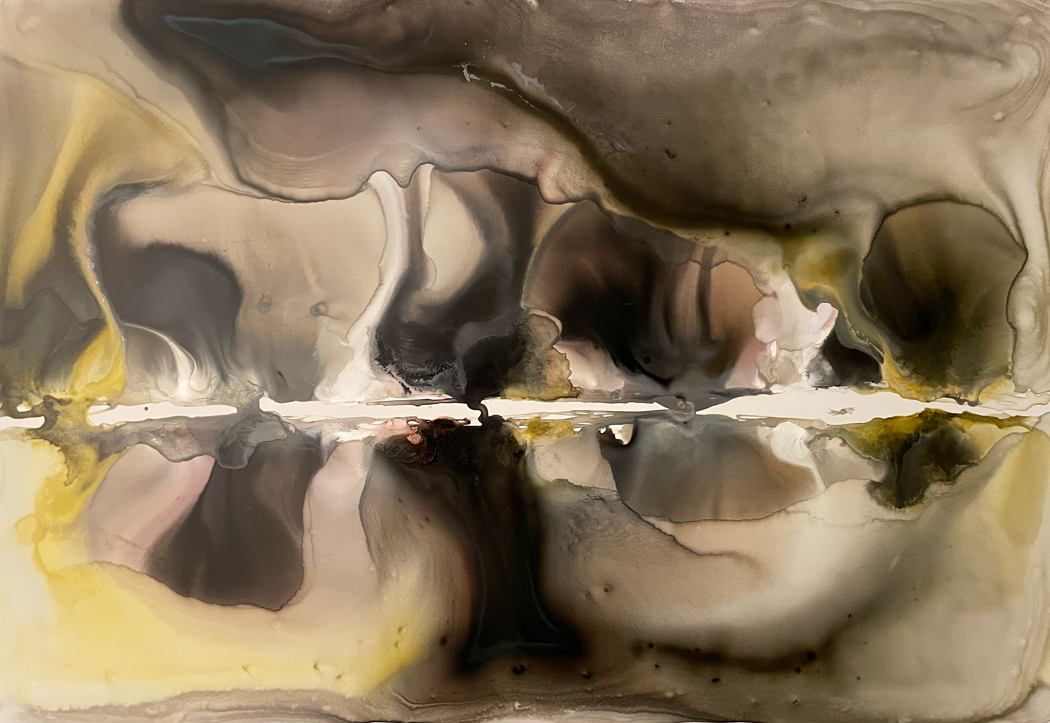 Acrylic, watercolour & ink on mineral stone sheet